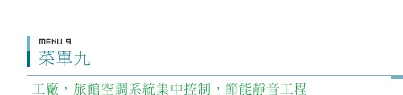 - 主機群控:依作息表或空調負荷需求做開關機控制,依空調負荷需求做台數控制,輪流開機控制使運轉時數平均,依外氣溫度改變空調負荷做冰水溫度重置。
